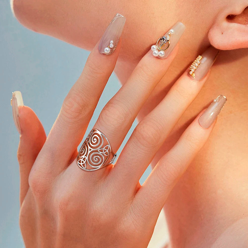 El Anillo Draco de Triskel Símbolo Celta de Acero Inoxidable Ajustable es una joya que une la antigua simbología celta con un diseño moderno y resistente. Este anillo está finamente elaborado con acero inoxidable de alta calidad, asegurando durabilidad y resistencia a la corrosión. Su diseño ajustable permite un ajuste cómodo para diferentes tamaños de dedo, haciendo que sea tanto práctico como estéticamente atractivo. En el centro del anillo, destaca el triskel celta, un símbolo ancestral que representa la trinidad y el equilibrio entre mente, cuerpo y espíritu.