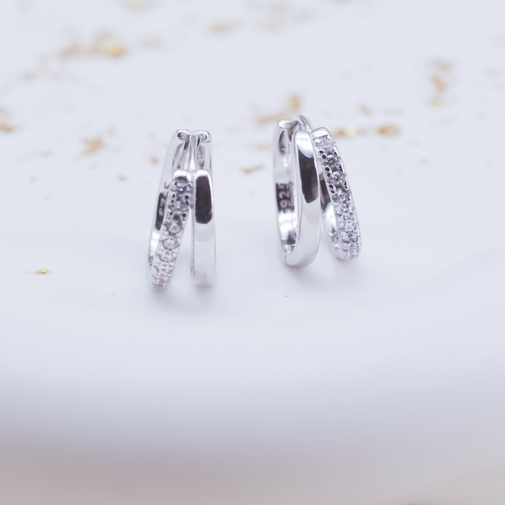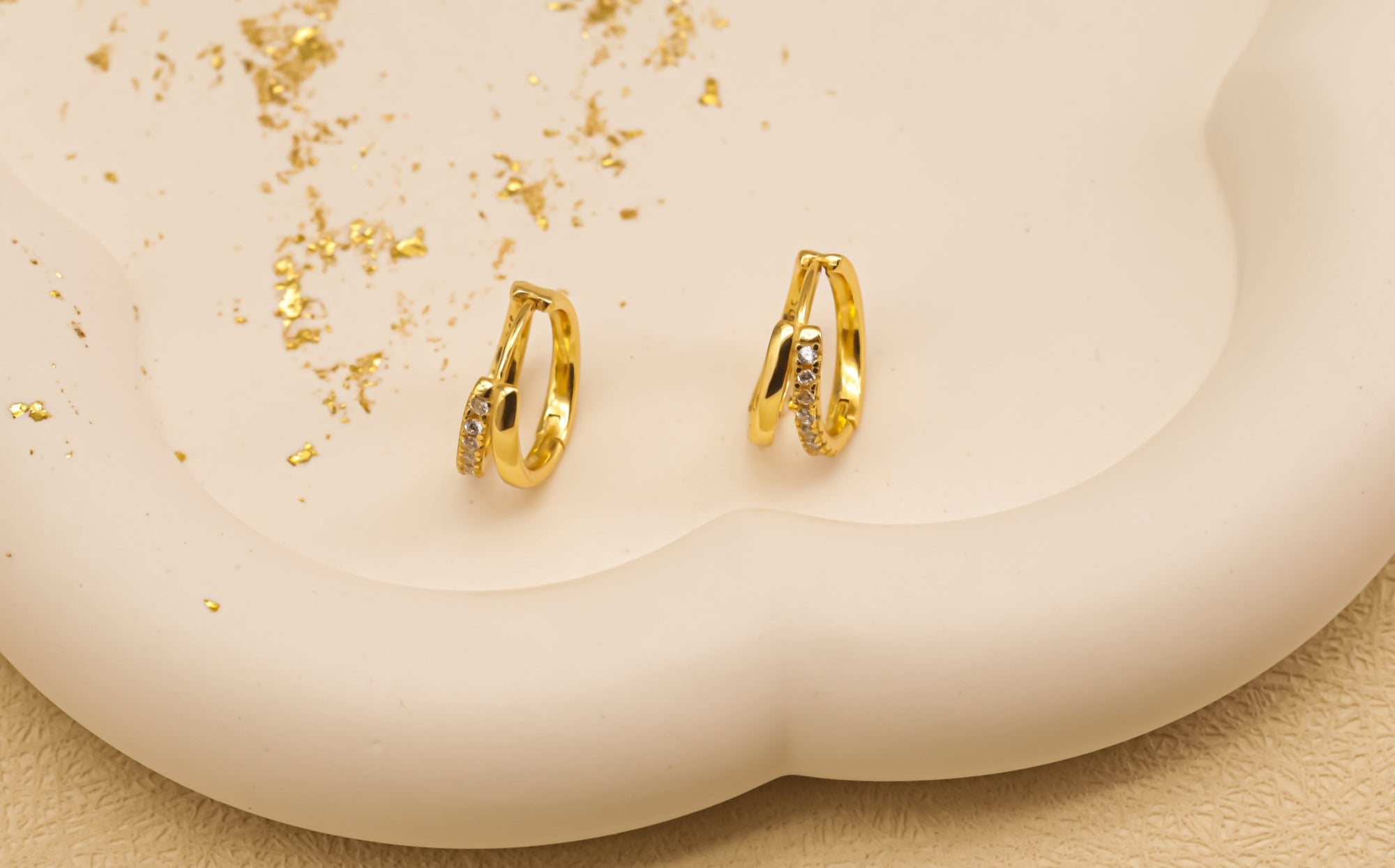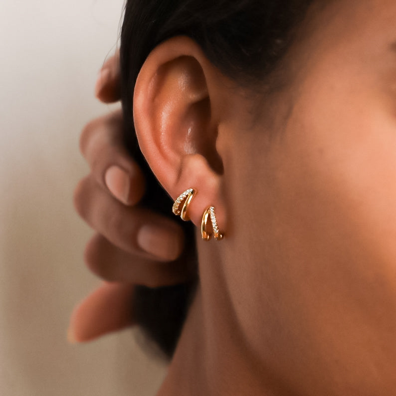 Pendientes de Doble Aro con Circonitas - Estilo huggie - Dahlia (2x1)