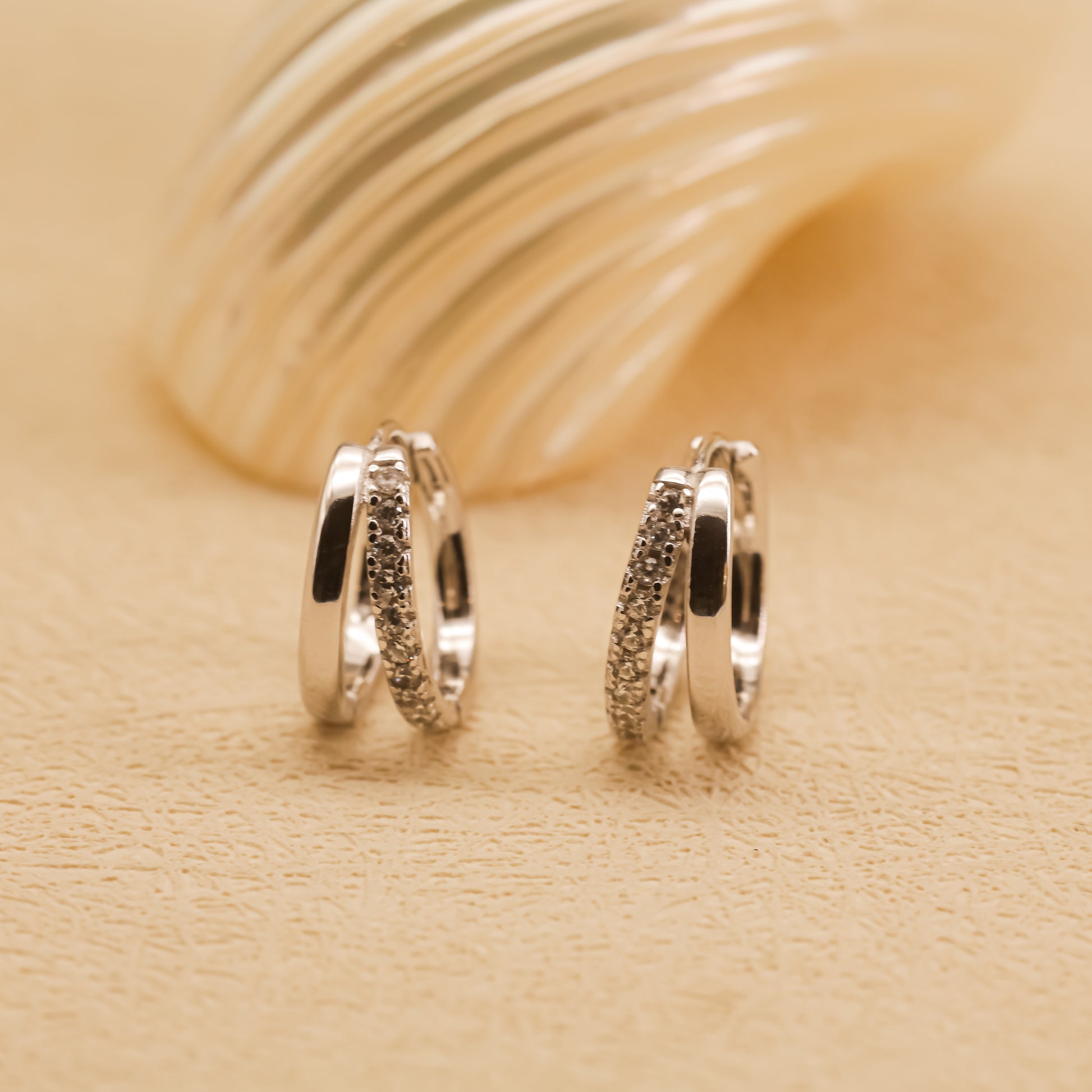 Estos pendientes de doble aro combinan la armonía de dos formas entrelazadas —una lisa, pura y elegante; otra con un sutil pavé de circonitas que atrapan la luz en cada movimiento— creando un equilibrio perfecto entre sofisticación y sencillez.