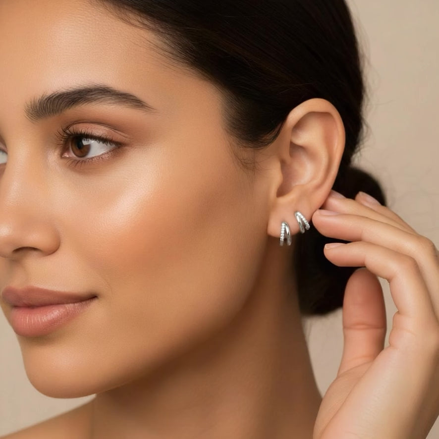 Diseñados para elevar cualquier estilo, los Pendientes Doble Aro con Circonitas son esa joya que se adapta a ti, no al revés.