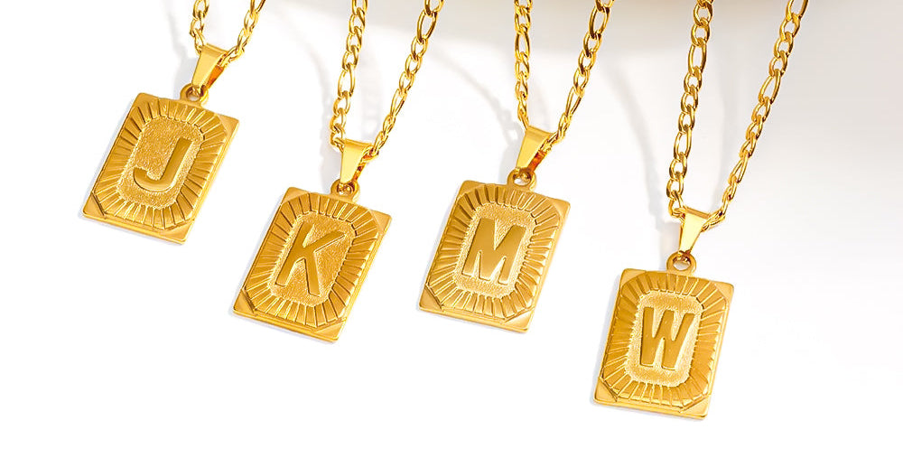 Colgante Rectangular con Inicial Personalizado | Acero Inoxidable con Baño de Oro 18K