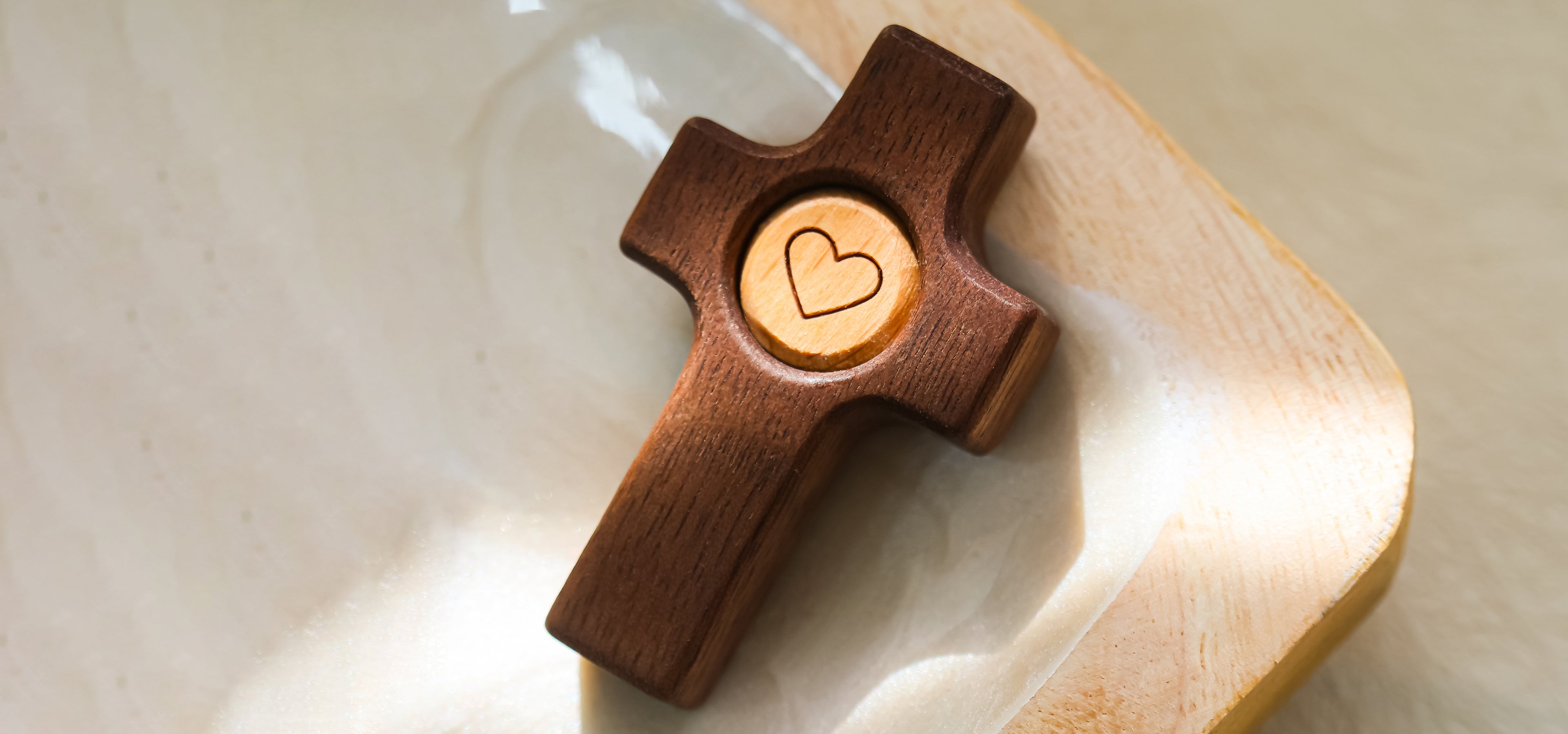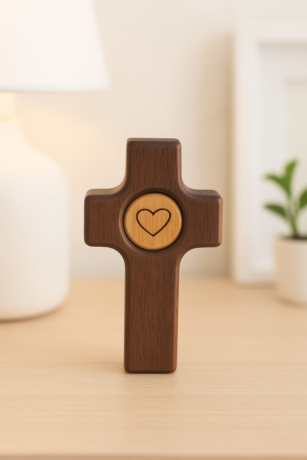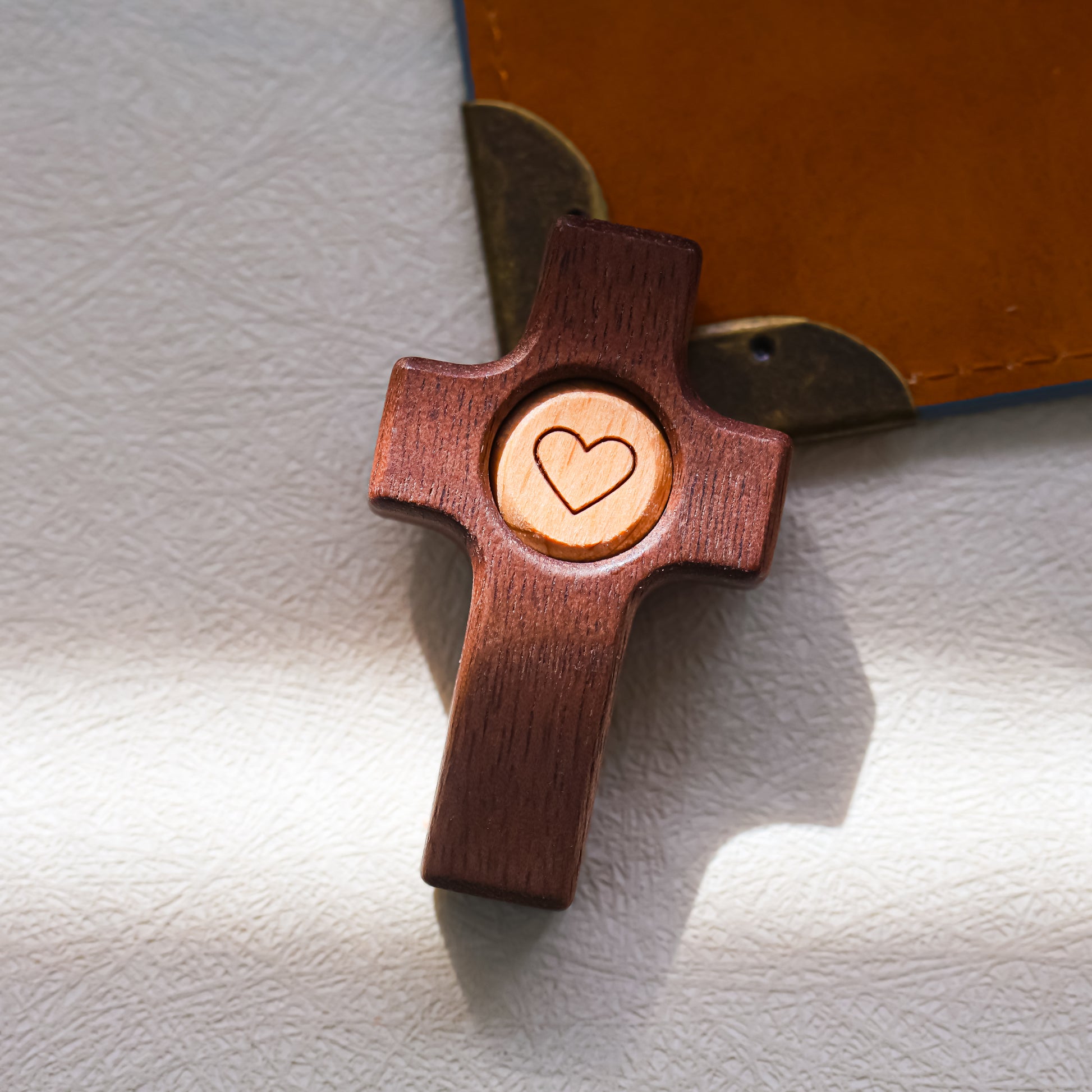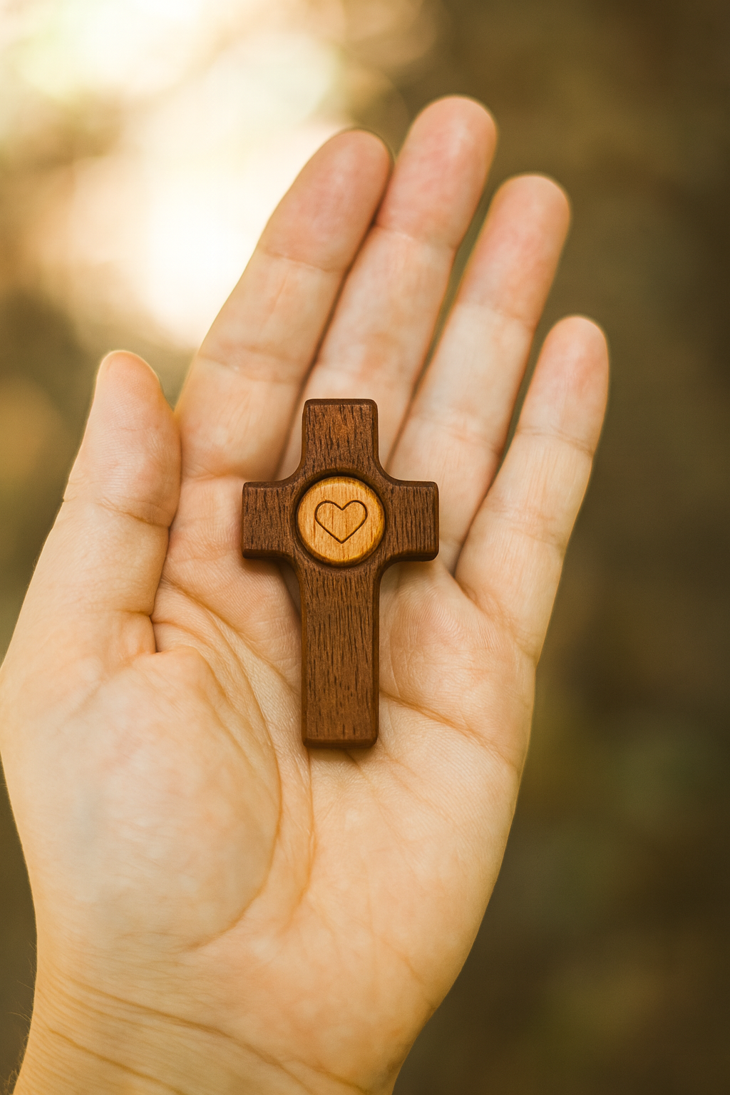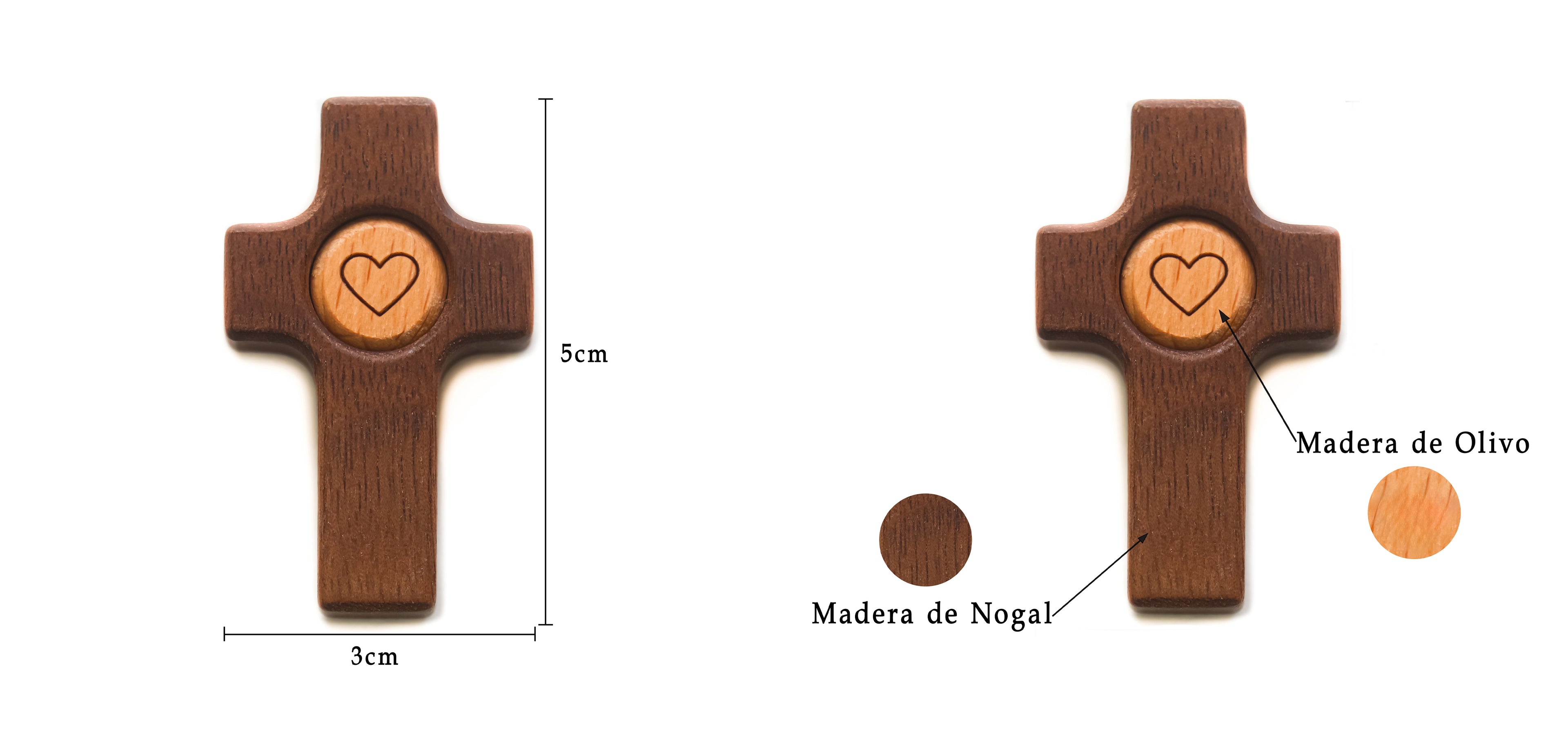 Cruz de Madera con Corazón | Un Símbolo de Fe y Amor hecho en madera de olivo y nogal.
